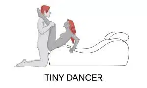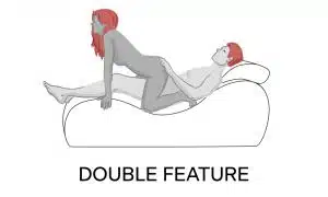 La cavalière — l’un en appui sur l’arche basse, l’autre qui prend le contrôle au-dessus. Le rythme est entièrement maîtrisé par celui ou celle qui chevauche.